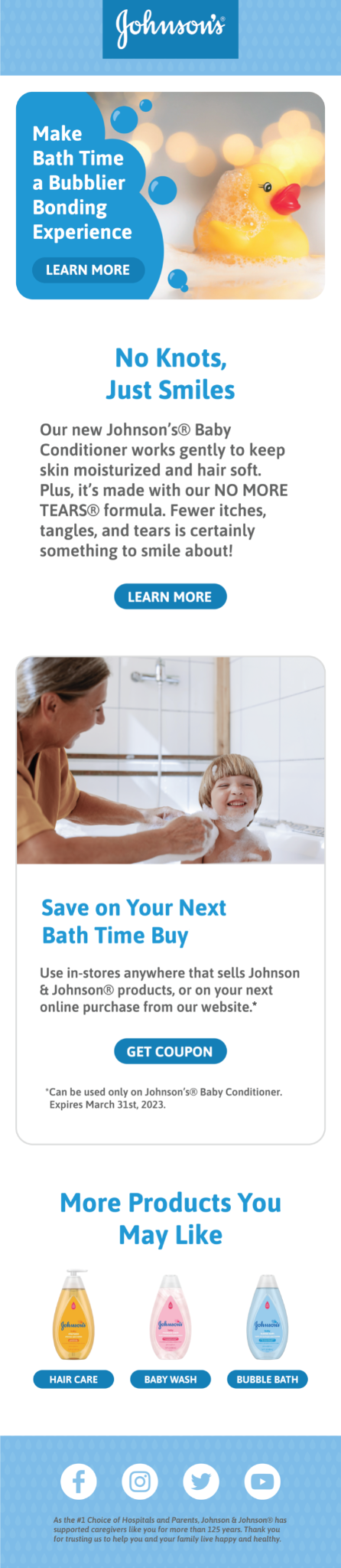 Solution: A three-email sequence, starting with a teaser to pique interest, followed by an announcement to introduce the product, and ending with the product launch and offer. To appeal to the target audience, I emphasized the benefit of making bath time an easier and more enjoyable experience for both parent and child.